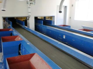 非鉄選別機で選別したものの中からダスト等を人の手で選別します。