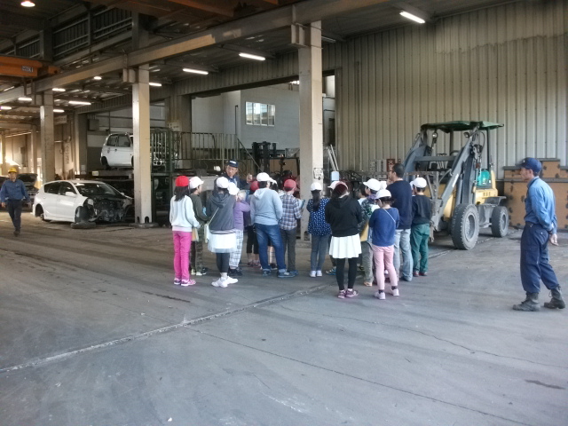 本日、柏木小学校の5年生の皆さんが弊社リサイクルセンターへ工場見学に来られました。廃家電・廃自動車のリサイクル工程を熱心に勉強していました。