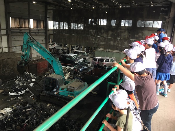 6月7日に須賀川市立仁井田小学校の3年生の皆さん(52名)が弊社リサイクルセンターに工場見学に来られました。リサイクルセンターの仕事内容について説明を受けた後、実際に廃家電・廃自動車のリサイクル工程を熱心に見学されていました。
