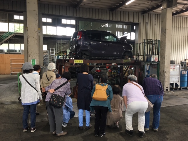 自動車の解体の様子を見学