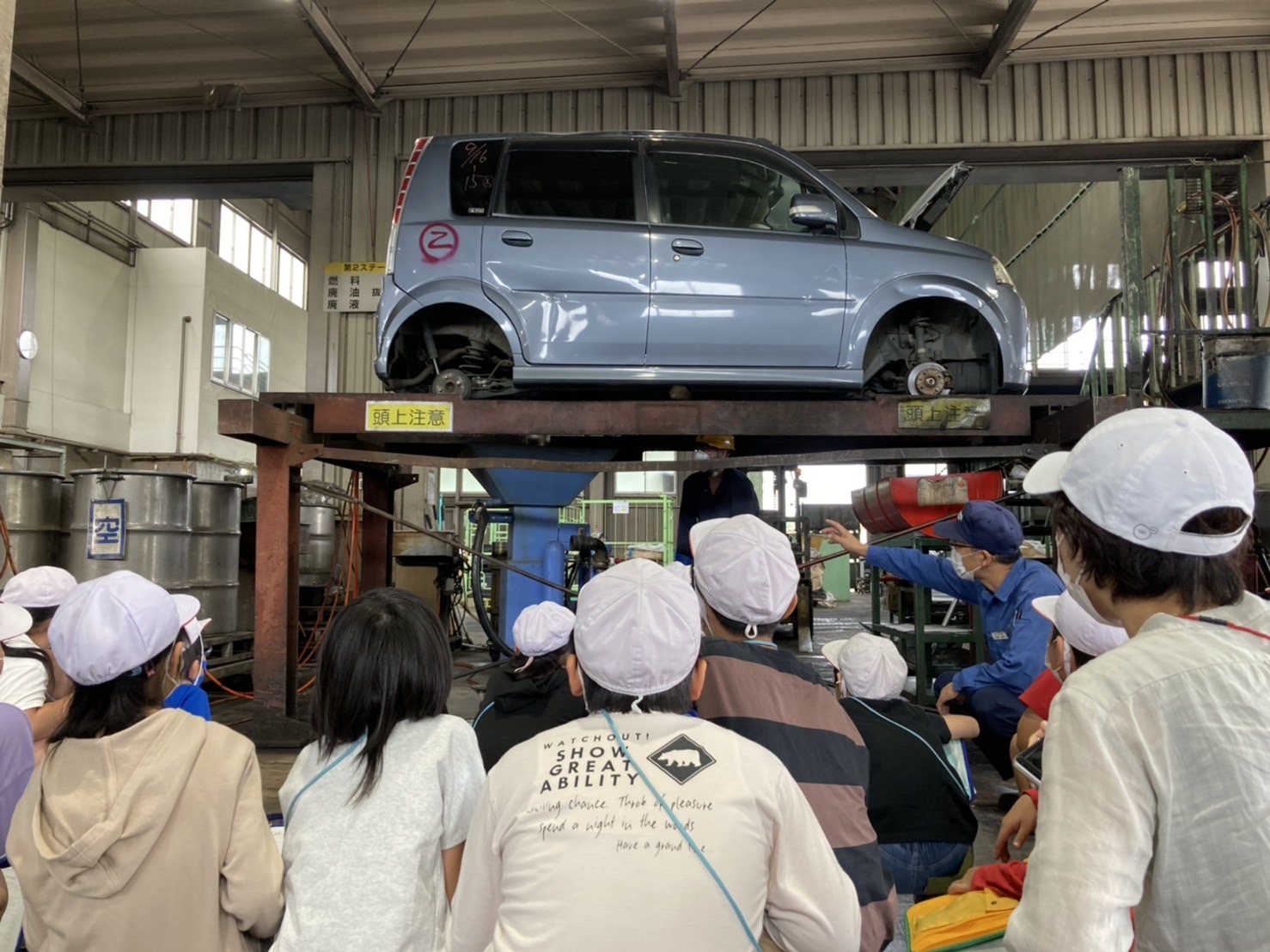 自動車の解体の様子を見学