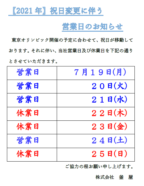 本社工場、スクラップセンター、リサイクルセンターの営業日が変更となります。