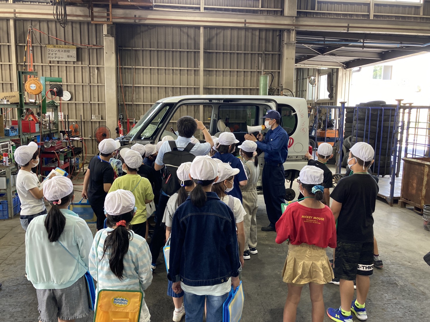 自動車の廃油回収の様子を見学