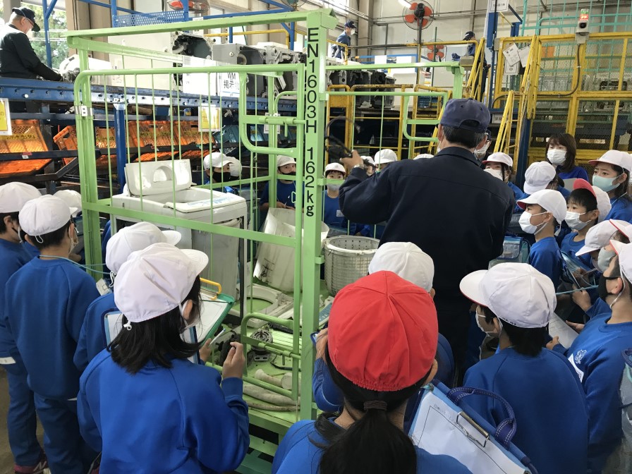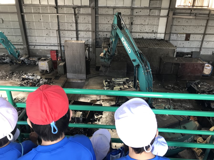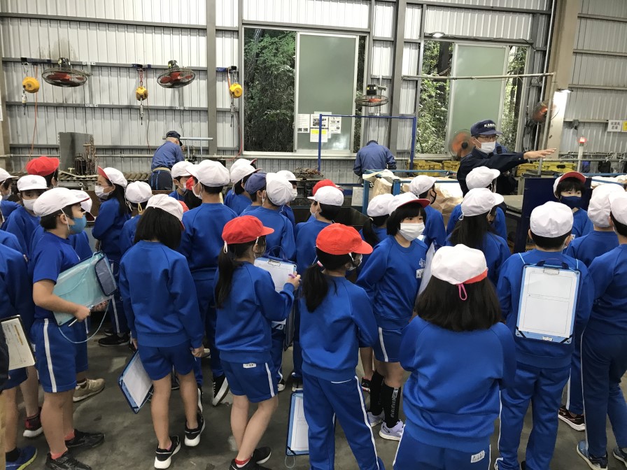 10月20日に須賀川市立第一小学校の4年生の皆さんが環境学習として当社リサイクルセンターに工場見学に来ました。廃家電・廃自動車のリサイクル工程を熱心に勉強していました。