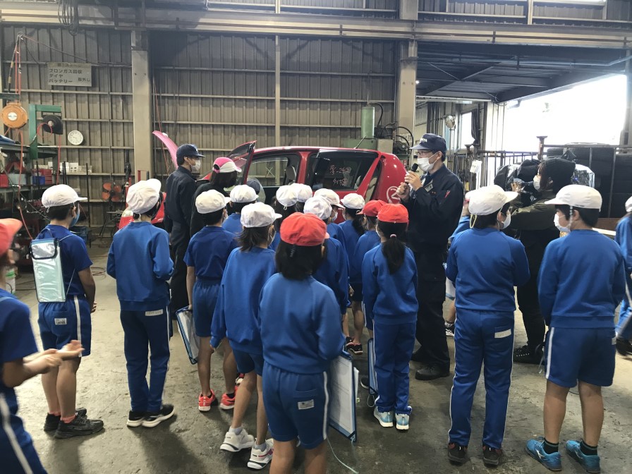 自動車の廃油回収の様子を見学