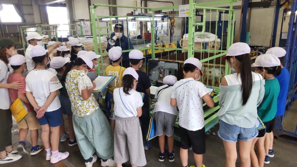 7月7日に須賀川市立第二小学校の4年生の皆さん57名が、学習旅行の一環で当社リサイクルセンターに来社されました。廃家電・廃自動車のリサイクル工程を熱心に勉強していました。