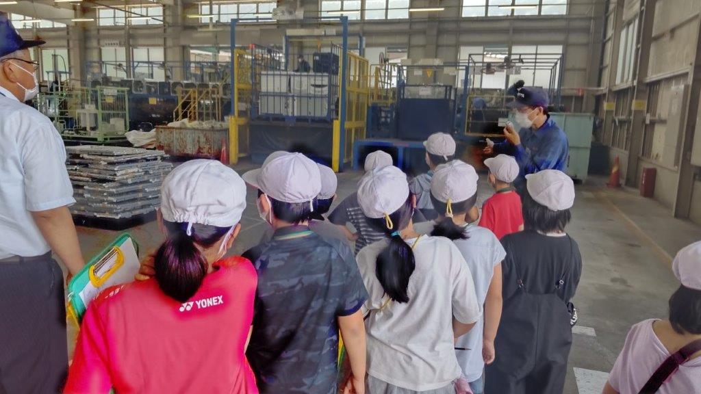 7月11日に須賀川市立小塩江小学校の3・4年生の皆さん10名が、学習旅行の一環で当社リサイクルセンターに来社されました。廃家電・廃自動車のリサイクル工程を熱心に勉強していました。