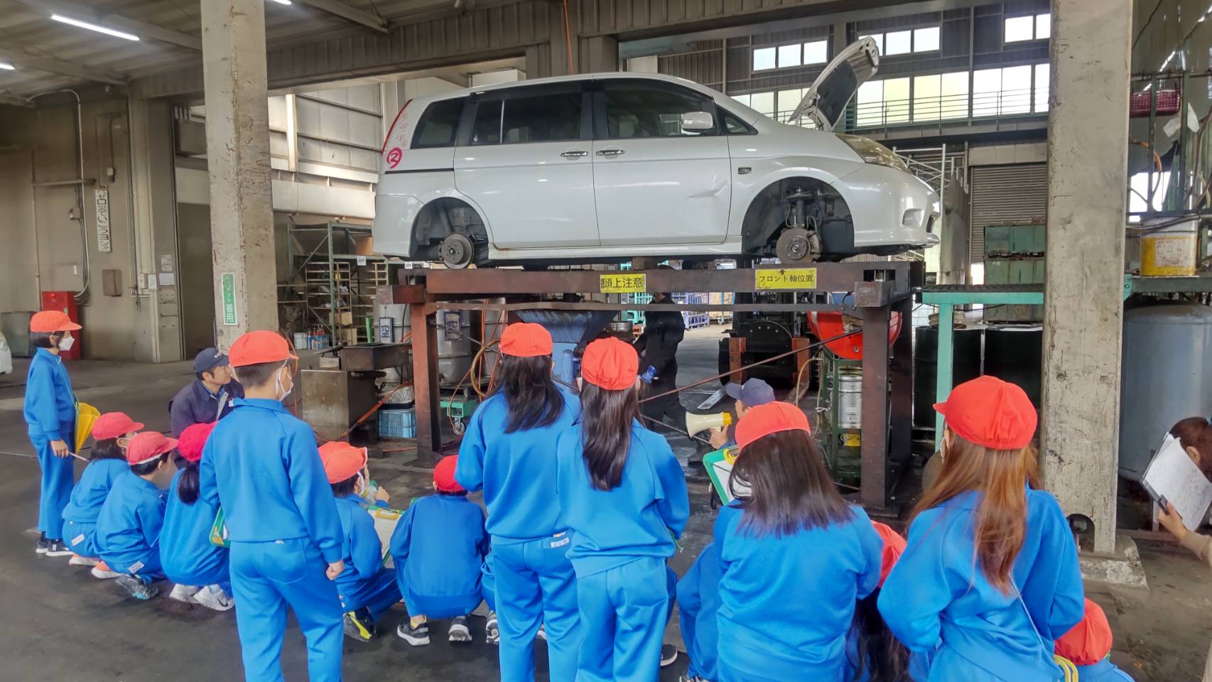 自動車の解体工程を見学