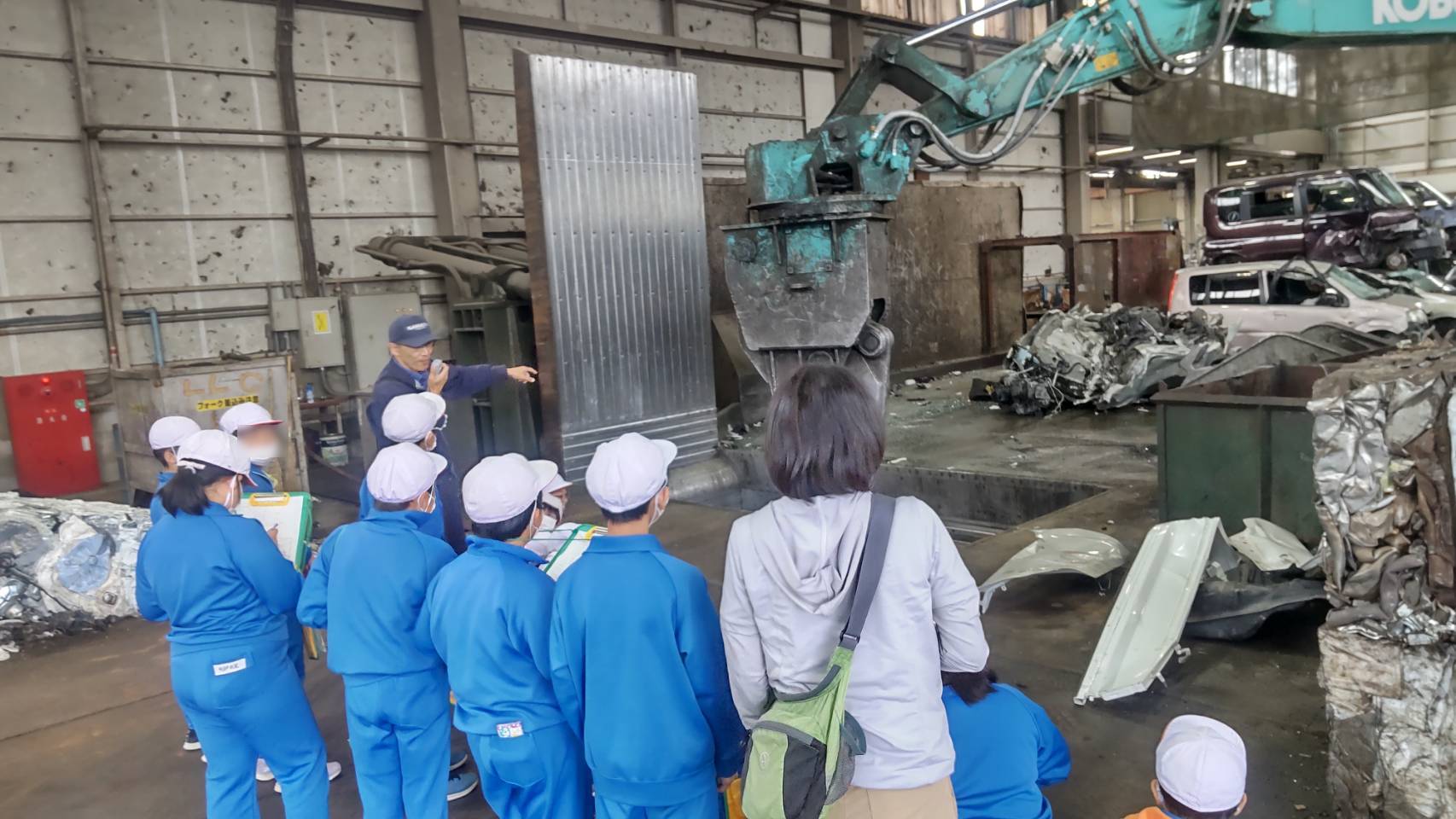 10月25日に須賀川市立柏城小学校の4年生の皆さん73名が、須賀川市ESD環境教育推進事業の一環で当社リサイクルセンターに来社されました。廃家電・廃自動車のリサイクル工程を熱心に勉強していました。