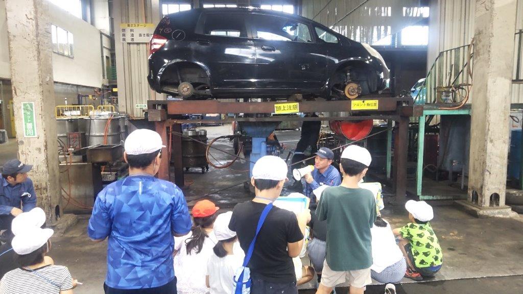 自動車の廃液回収工程を見学