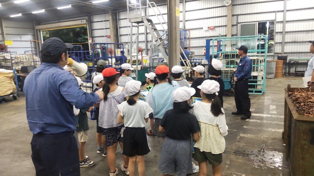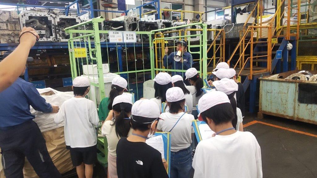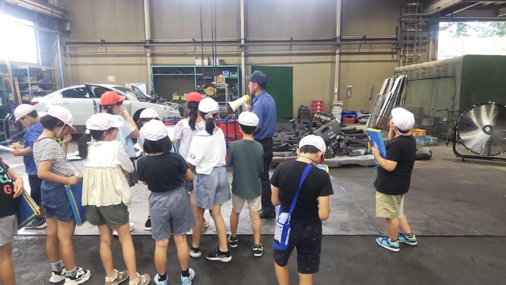 7月11日に須賀川市立第二小学校の4年生の皆さん58名が、須賀川市のESD環境教育推進事業として当社リサイクルセンターを見学に来ました。廃家電・廃自動車のリサイクル工程を熱心に勉強していました。