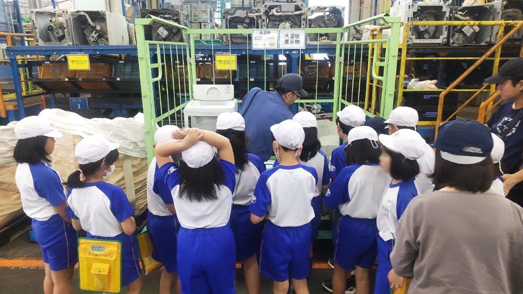 7月16日に須賀川市立長沼東小学校の4年生の皆さん14名が、須賀川市のESD環境教育推進事業として当社リサイクルセンターを見学に来ました。廃家電・廃自動車のリサイクル工程を熱心に勉強していました。