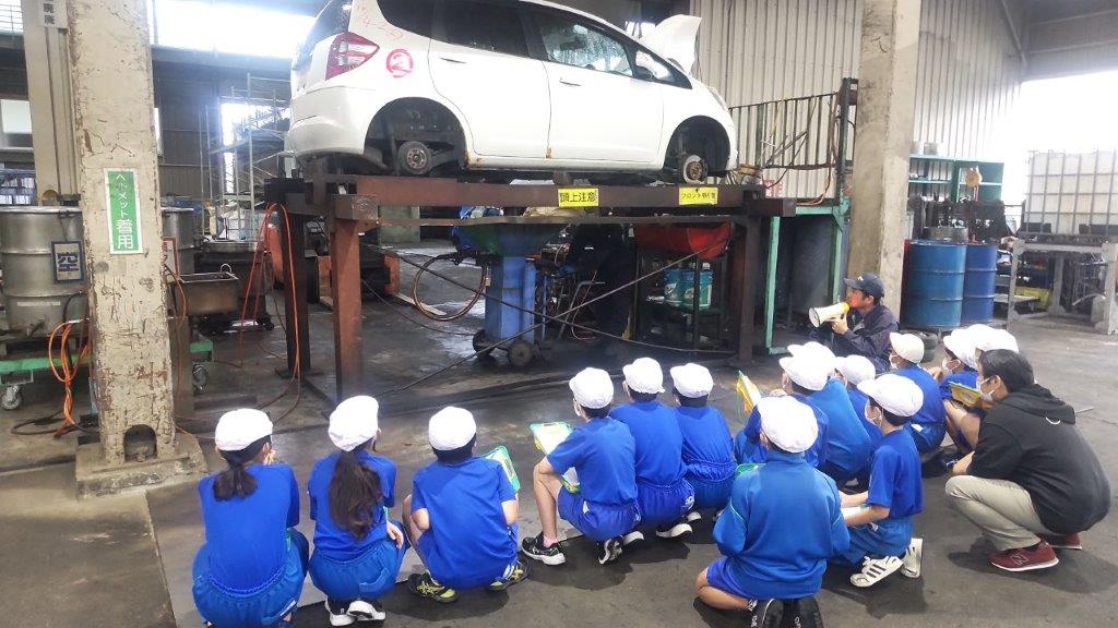 10月18日に須賀川市立柏城小学校の4年生の皆さん74名が、須賀川市ESD環境教育推進事業の一環として当社リサイクルセンターを見学に来ました。廃家電・廃自動車のリサイクル工程を熱心に勉強していました。