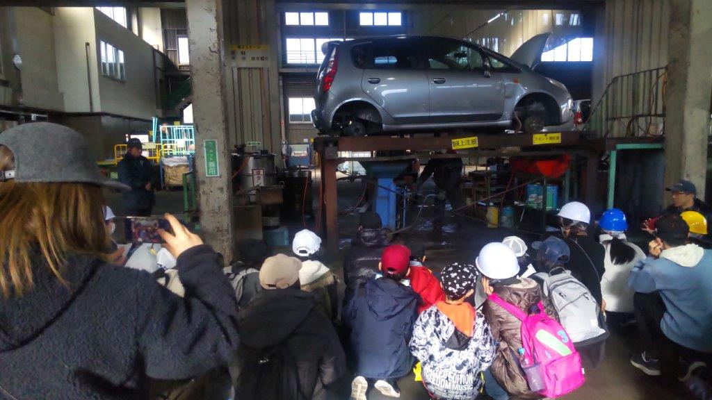 自動車の解体・プレス工程を見学