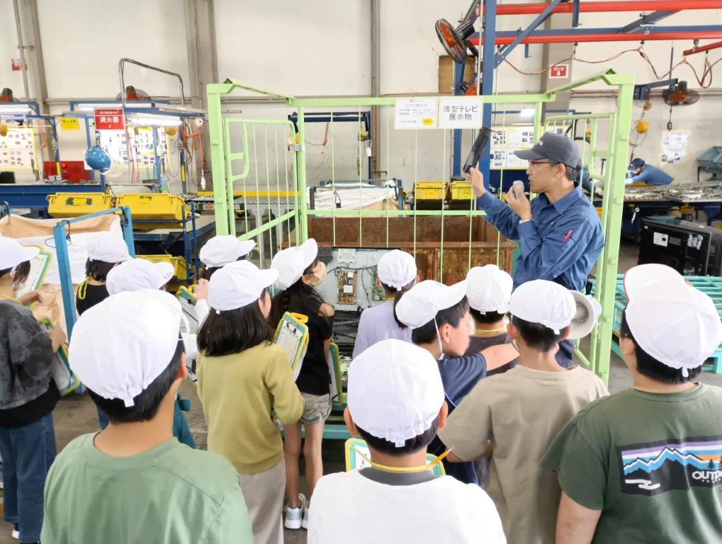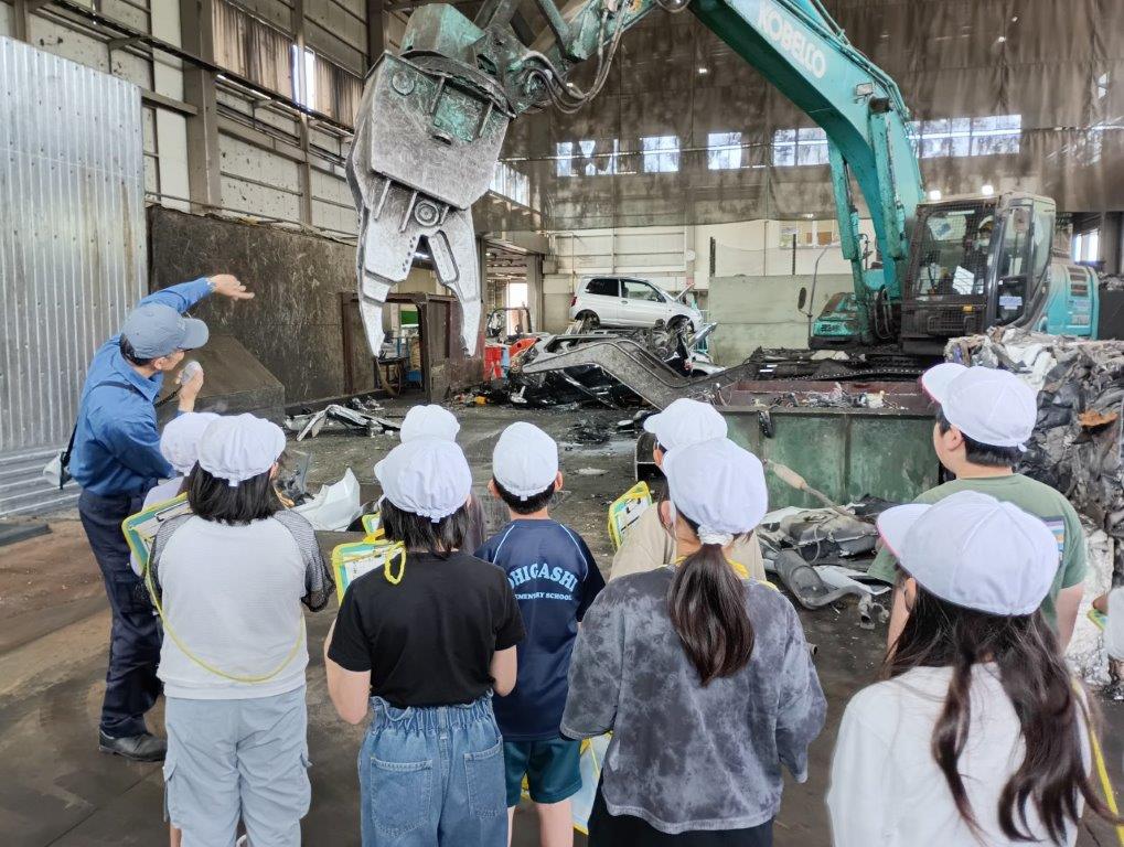 6月2日に須賀川市立大東小学校の4年生の皆さん33名が、須賀川市ESD環境教育推進事業の一環として当社リサイクルセンターを見学に来ました。廃家電・廃自動車のリサイクル工程を熱心に勉強していました。