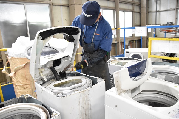 当社のリサイクルセンターは福島県で唯一、エアコン、テレビ、洗濯機・衣類乾燥機の3品目を解体することが出来る再商品化施設に認定されています。