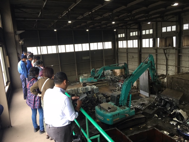 7月4日に郡山市、鏡石町のごみ処理施設を巡る「ごみ処理・リサイクル施設見学バスツアー」が行われ、約70人が当社リサイクルセンターを見学されました。廃家電・廃自動車が資源別に分解されていく作業工程を見学し、リサイクルの大切さについて学習されました。