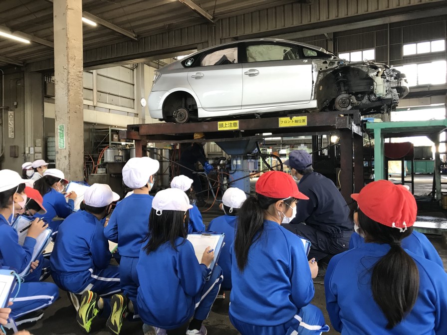 10月20日に須賀川市立第一小学校の4年生の皆さんが環境学習として当社リサイクルセンターに工場見学に来ました。廃家電・廃自動車のリサイクル工程を熱心に勉強していました。
