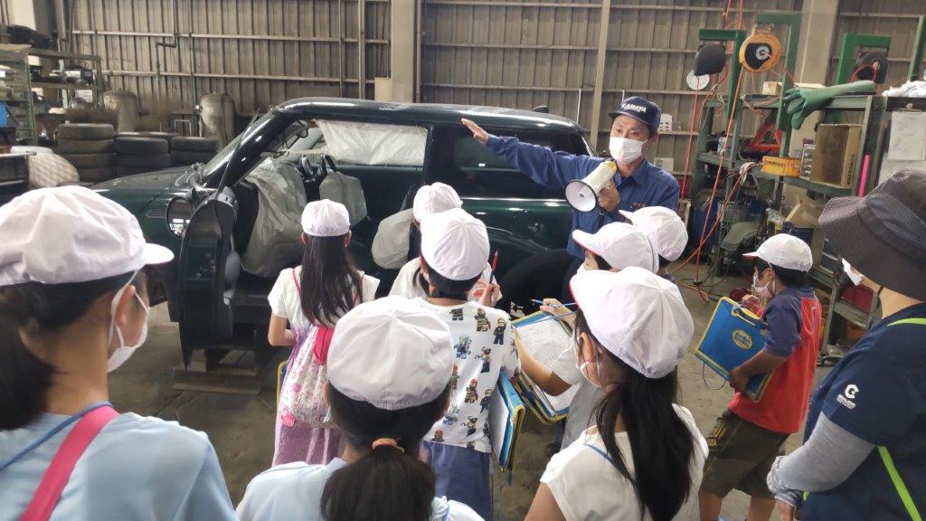 7月7日に須賀川市立第二小学校の4年生の皆さん57名が、学習旅行の一環で当社リサイクルセンターに来社されました。廃家電・廃自動車のリサイクル工程を熱心に勉強していました。
