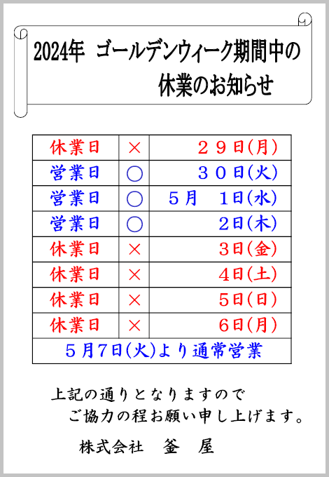 本社工場、スクラップセンター、リサイクルセンターの営業日をご案内申し上げます。